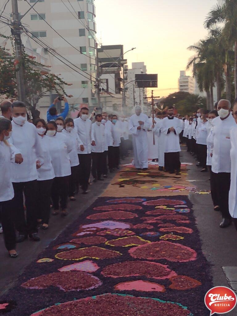 Com espírito de superação e recomeço, em 2022 os tradicionais tapetes foram confeccionados por voluntários das paróquias de Patos de Minas, encantando todos os presentes na procissão.