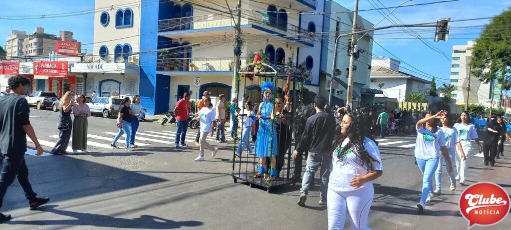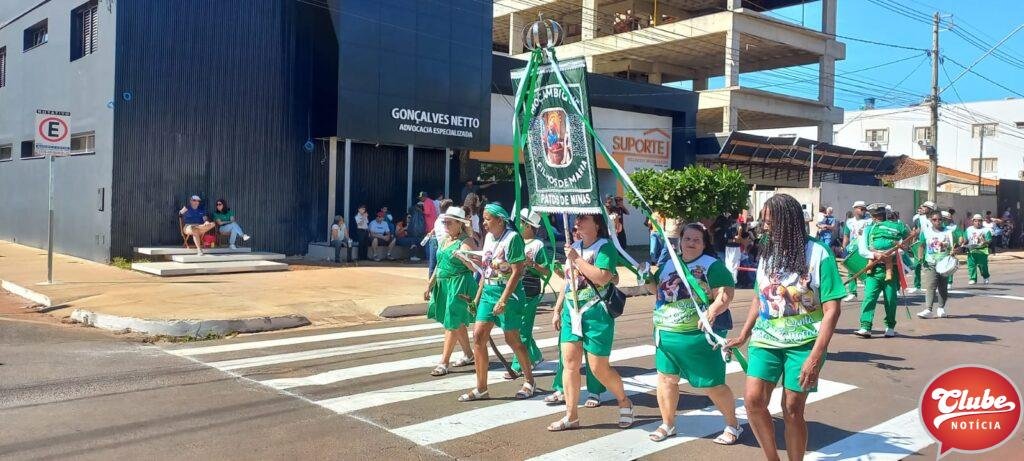 O desfile teve três etapas, que são: a entrada na avenida de sete instituições que compõem o bloco da segurança pública; a reunião de 15 escolas estaduais, municipais e particulares, com seus alunos e professores; e a participação de 20 agremiações, entre entidades culturais e sociais de Patos de Minas. Ao todo, foram oito blocos, que foram divididos em subtemas. São eles: