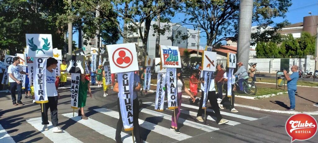 Fundamentos da paz; A guerra como ela é: povos x povos; A guerra como ela é: homem x natureza; A família: sustentáculo de princípios e valores humanos; A escola por uma educação emancipadora; Comunidade: agente transformadores; O poder público: agente transformadores; e Empresas da paz, que são aquelas que tem promovido ações de cooperativismo na cidade, em um contexto de socialização.