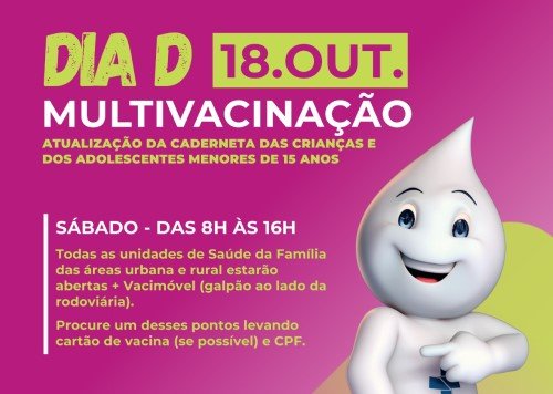 A Prefeitura de Patos de Minas realiza neste sábado, 18 de outubro, o “Dia D” de Multivacinação, uma ação voltada à atualização da caderneta de vacinação de crianças e adolescentes menores de 15 anos.