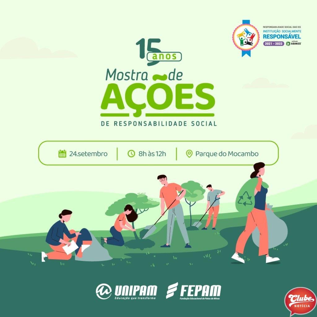 O Centro Universitário de Patos de Minas (UNIPAM) promove no dia 24 de setembro (sábado), das 8h às 12h, no Parque Municipal do Mocambo, o Dia de Responsabilidade Social do Ensino Superior.
