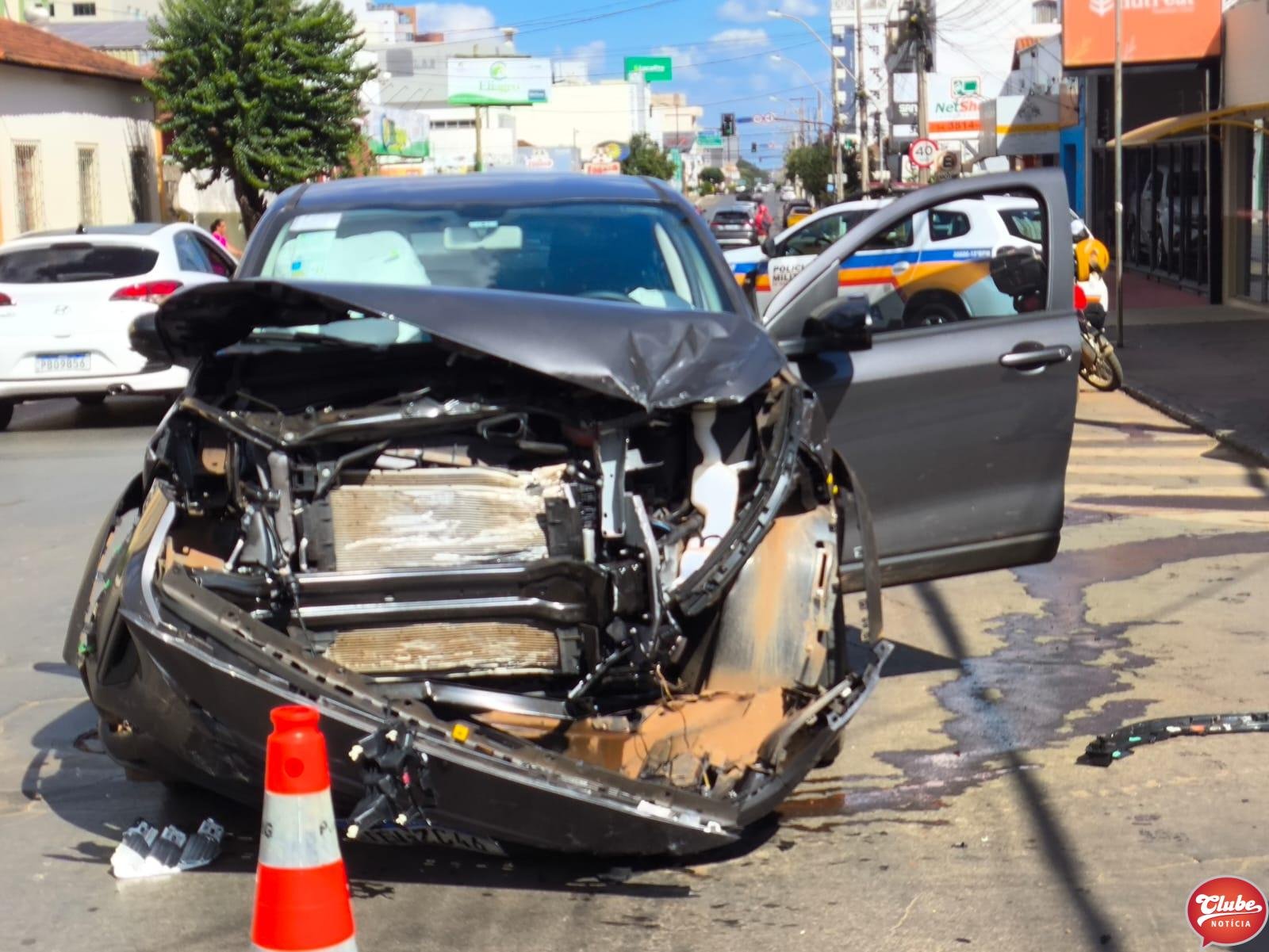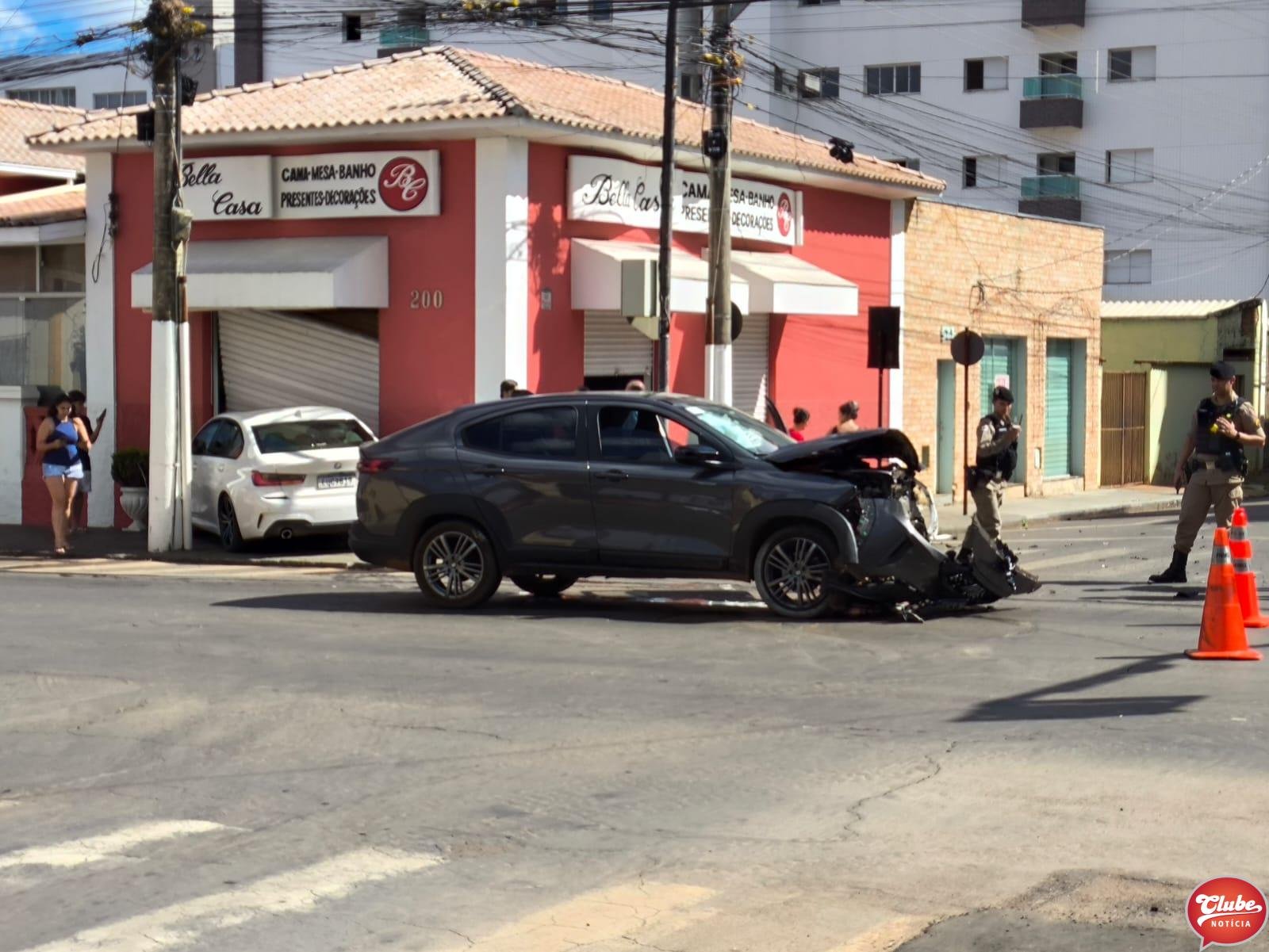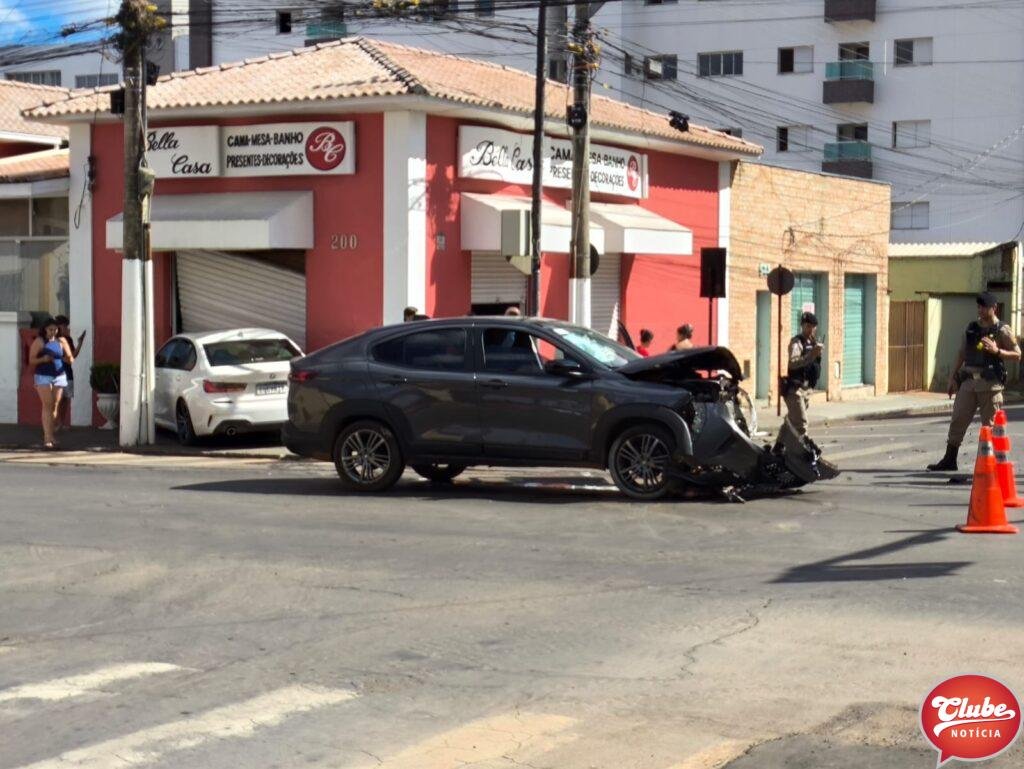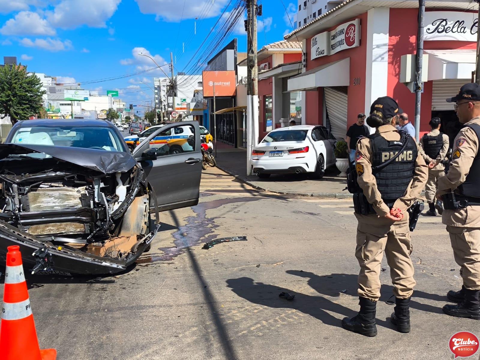 Um acidente envolvendo um Fiat Fastback e uma BMW foi registrado na Rua Farnese Maciel, esquina com a Rua Dr. Marcolino, no centro de Patos de Minas, neste sábado (25).