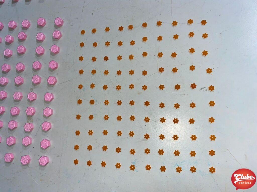 No total, foram localizados 656 comprimentos de ecstasy, 100 comprimentos de LSD, um invólucro com porção de MDMA, seis porções de maconha, 10 bolas e três tabletes de haxixe.