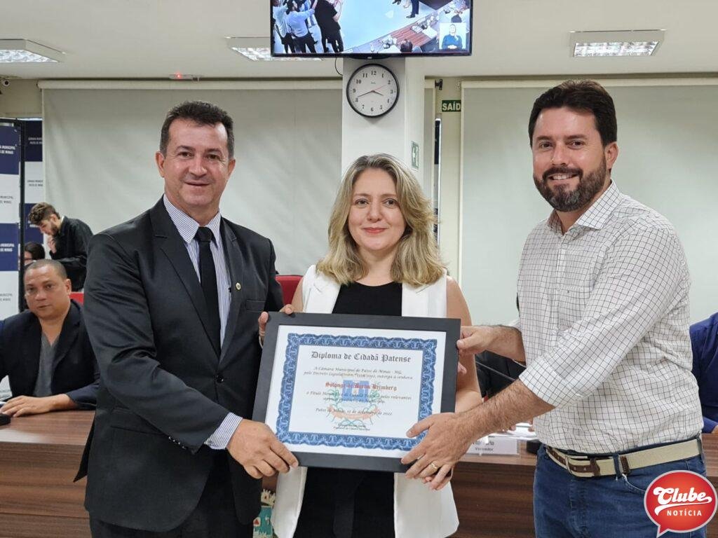 Durante a reunião ordinária da Câmara Municipal de Patos de Minas, realizada nesta quinta-feira (15/12), a juíza de direito Solange de Borba Reimberg recebeu o título honorífico de Cidadã Patense.