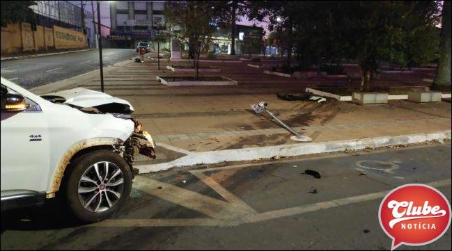 Já a Fiat/Toro subiu na praça, bateu numa outra placa e danificou um banco. Uma câmera do Olho Vivo flagrou os carros acidentados e uma guarnição da PM foi notificada para atender a ocorrência.