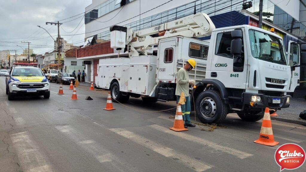 Equipes da Companhia Energética de Minas Gerais (CEMIG) e da terceirizada estiveram no local para reparar o cabo de alta tensão.