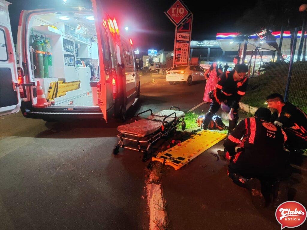 Na noite da última sexta-feira (04), o Serviço de Atendimento Móvel de Urgência (SAMU) foi acionado para atender a um acidente na Avenida JK, trevo com a Avenida Professor Aristides Memória, no bairro Jardim Paulistano envolvendo uma motocicleta e um veículo Ford/Fiesta o motorista do carro relatou que seguia pela Avenida JK, na faixa central da marginal, quando deu seta para a direita para mudar de faixa e entrar num posto de combustíveis.