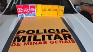 Durante a fiscalização, o condutor afirmou ser vendedor de enxovais, mas os policiais encontraram oito aparelhos de telefone smartphone, todos de origem estrangeira (“Made in China”), sem nota fiscal, documentos aduaneiros ou comprovante de procedência.