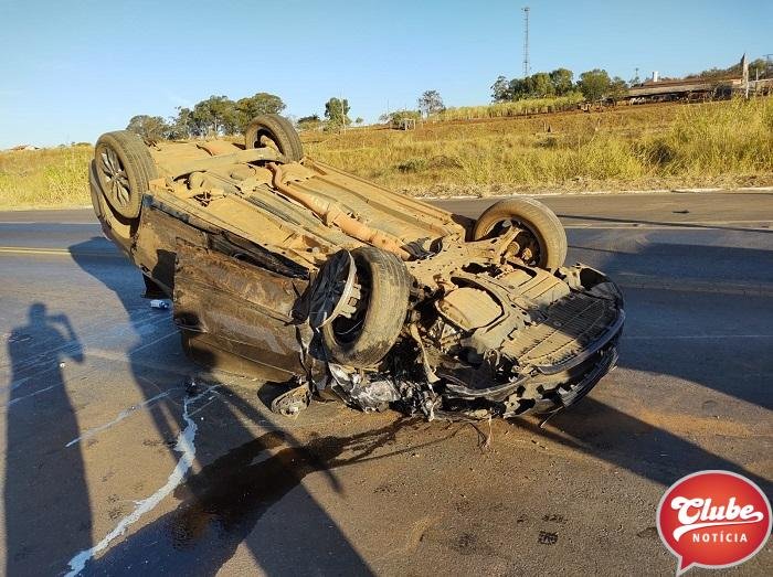 Segundo informações apuradas pelo repórter Luís César com o inspetor Diego da PRF, a batida envolveu um veículo Fiat/Palio vermelho e um Honda/Fit preto. Após o impacto, o carro preto capotou e parou com as rodas para cima.
