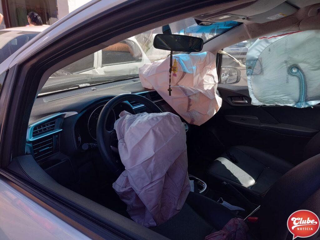 Segundo informações, o veículo VW/Gol seguia pela Rua Marechal Teodoro. A condutora inabilitada avançou a parada obrigatória e foi atingida pelo Honda/Fit que seguia pela Avenida Professora Elza Carneiro Franco. Com o impacto, o VW/Gol foi lançado contra as barreira de proteção do passeio de uma loja de roupas.