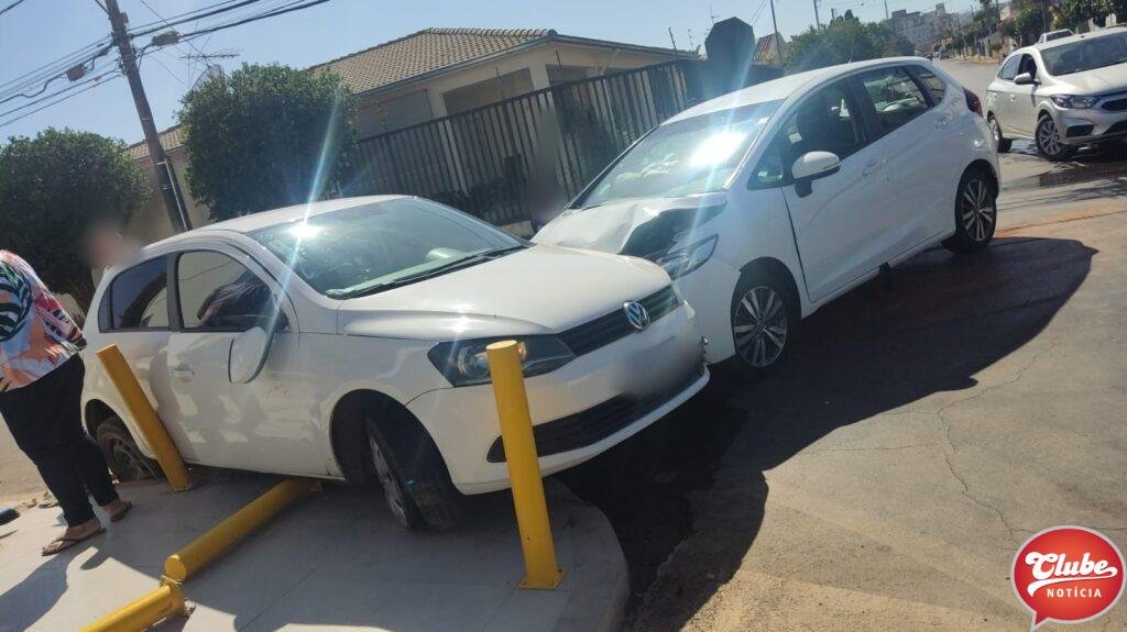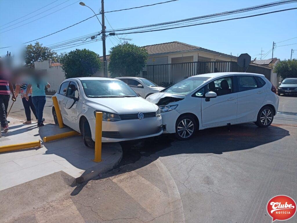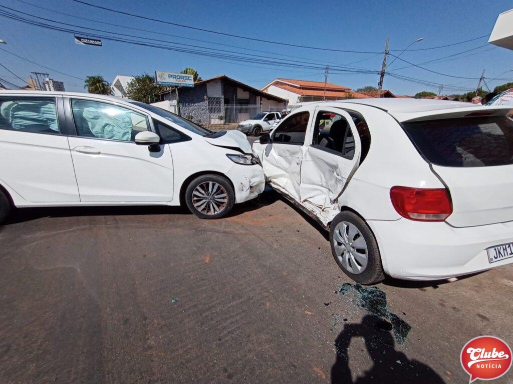 Uma motorista avançou a parada obrigatória e foi atingida por um carro. O acidente aconteceu na esquina da Rua Marechal Teodoro com a Avenida Professora Elza Carneiro Franco, no Bairro Sobradinho em Patos de Minas. A condutora que provocou o acidente era inabilitada e foi presa.
