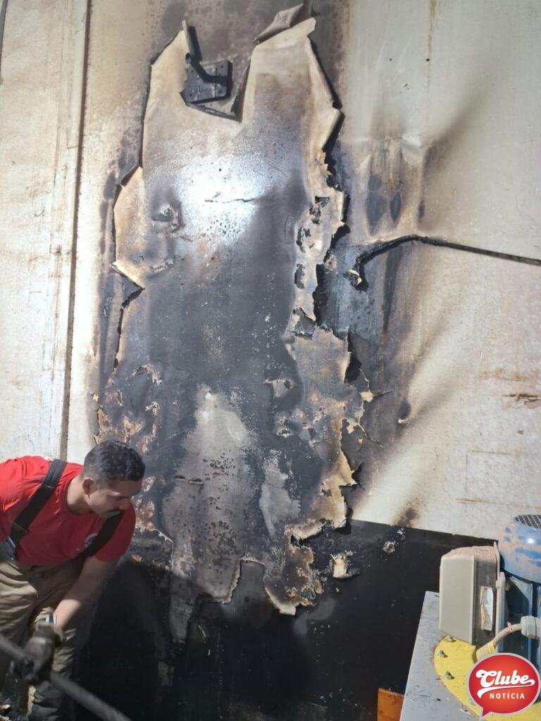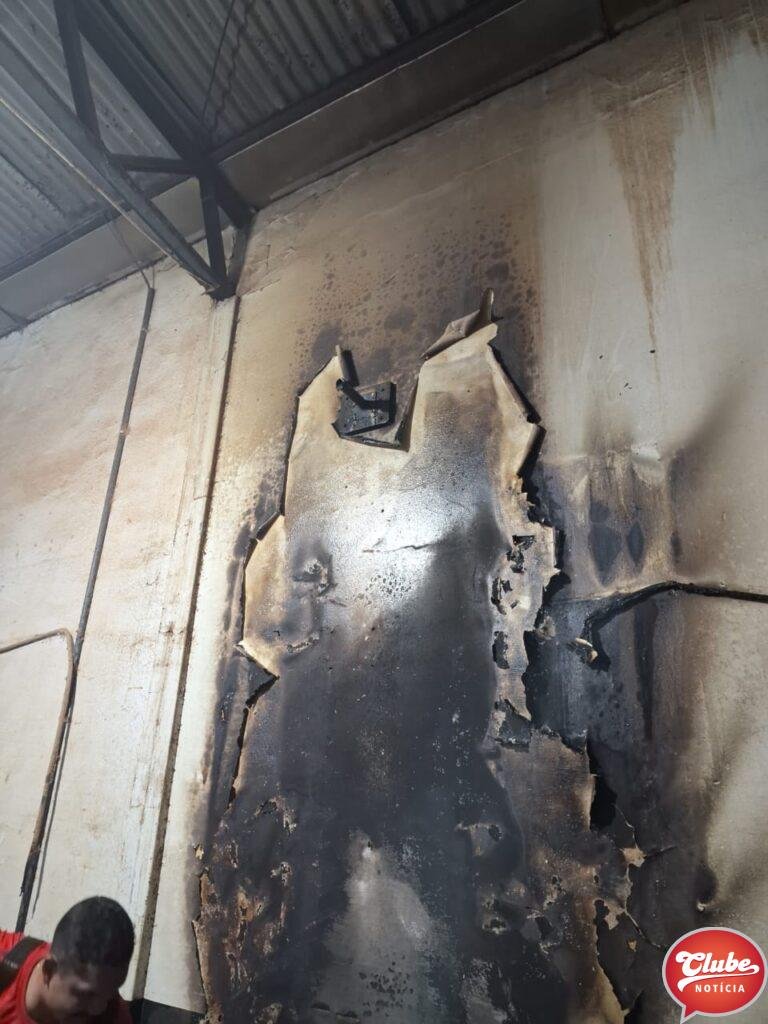 O incêndio iniciou, provavelmente, na fiação elétrica, nas proximidades de um ventilador de teto, conforme pode ser visto nas imagens em anexo. Foram queimadas algumas tábuas de madeira MDF.