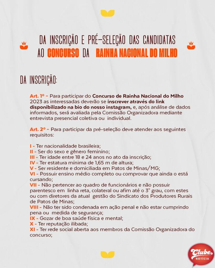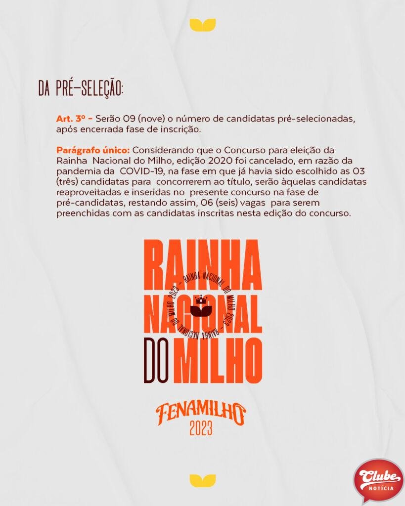 Com a Festa Nacional do Milho 2023 cada vez mais próxima, a comissão organizadora do concurso de Rainha Nacional do Milho abriu, nesta terça-feira (28/02), as inscrições para as jovens patenses que sonham em se tornar a próxima majestade do milho.
