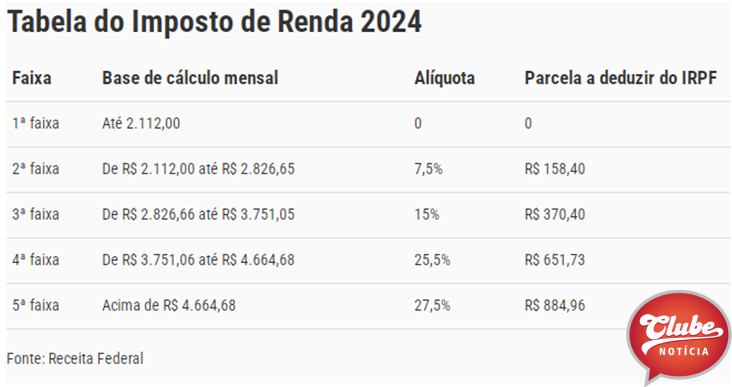 Confira a tabela do imposto de renda de 2024: