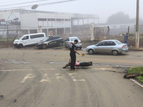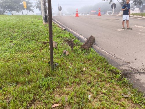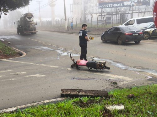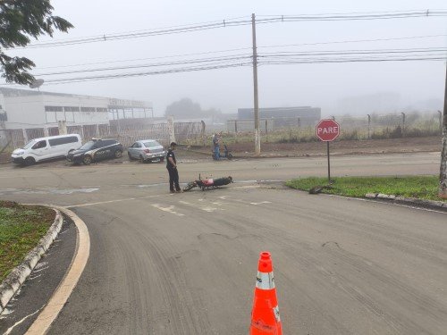 Equipes do Corpo de Bombeiros foram acionadas para atender a ocorrência envolvendo a queda de um motociclista. No local, na rotatória de acesso ao bairro Céu Azul, a vítima foi encontrada caída na pista de rolamento, já em estado grave.