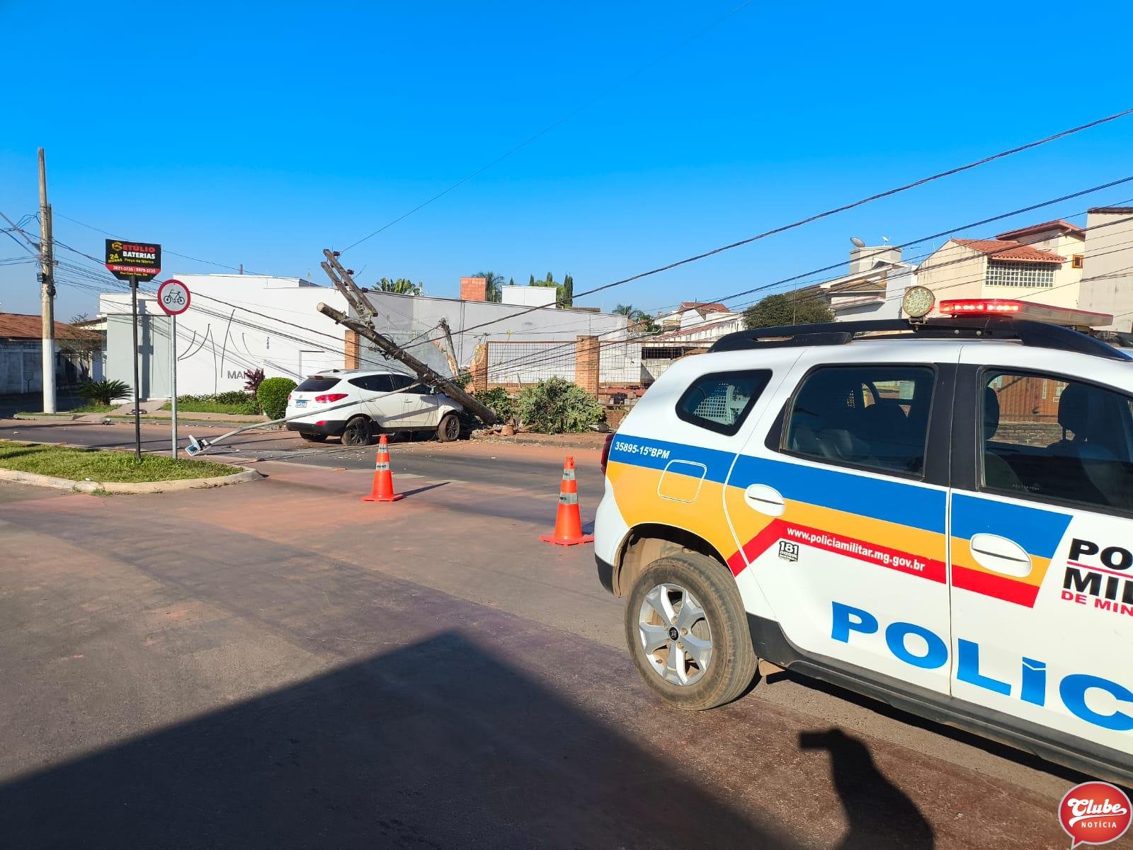 Os policiais foram ao hospital, porém o condutor já havia deixado o local. Equipes de uma empresa terceirizada da CEMIG e de companhias de internet trabalham na troca do poste.