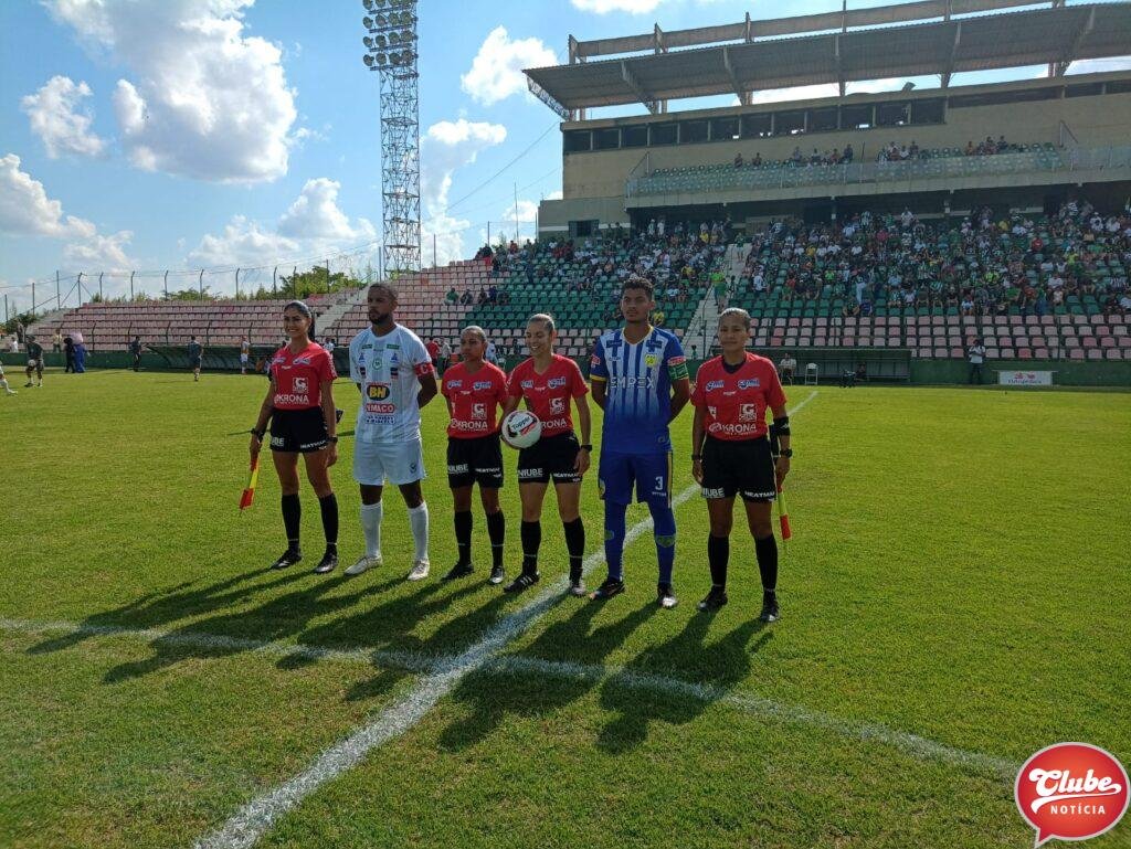 Quarteto feminino de arbitragem em Patos de Minas: Francielly Fernanda Lima de Castro no apito; Suellen das Graças Gonçalves Silva e Érica Mara da Silva Lopes, como assistentes, além de Jéssica Lorrany da Silva, quarta árbitra.