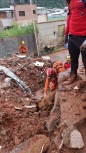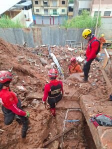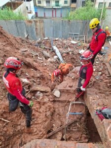 As operações seguem com cautela e técnica, diante da complexidade da ocorrência e da instabilidade estrutural da área afetada.