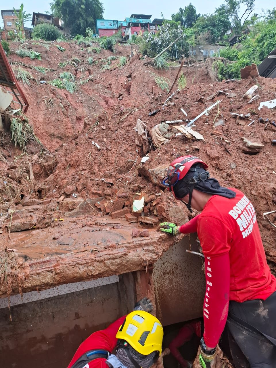 As operações seguem com cautela e técnica, diante da complexidade da ocorrência e da instabilidade estrutural da área afetada.