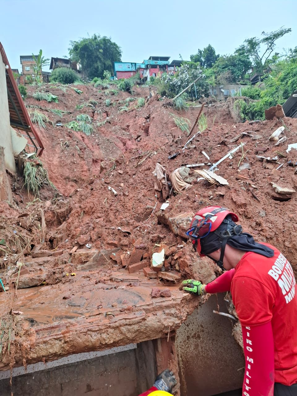 O 12º BBM atua em conjunto com diversas frentes de trabalho. Equipes terceirizadas da Prefeitura dão suporte com o uso de retroescavadeira e caminhão para remoção controlada dos escombros. Técnicos da Agência Nacional de Telecomunicações (Anatel) também estão no local, realizando o rastreamento de sinais de celular que possam auxiliar na localização da possível vítima.
