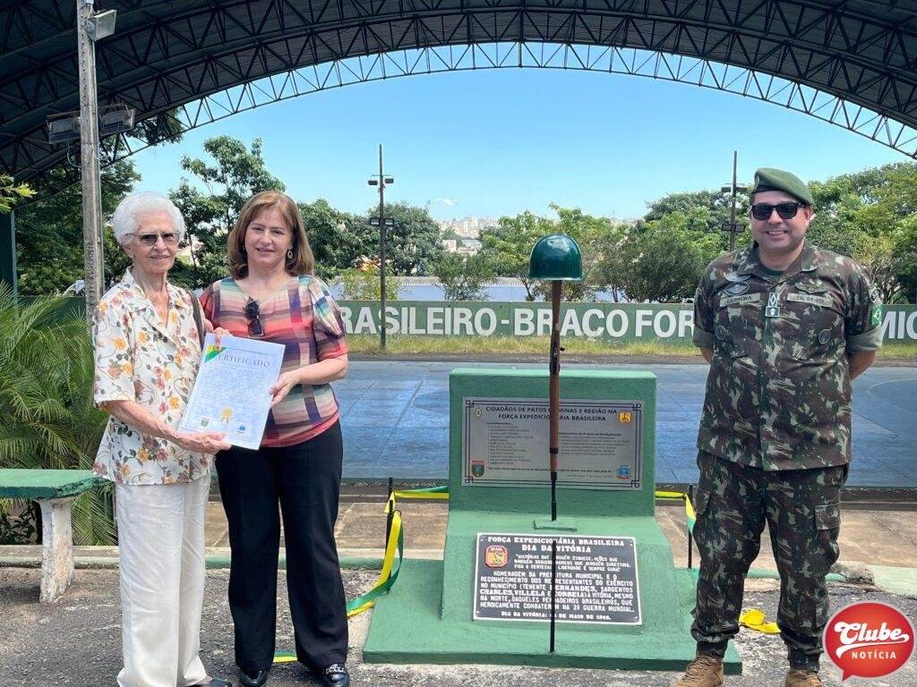 Na manhã desta sexta-feira (21), no dia em que se celebra os 80 anos da tomada de Monte Castelo, pelos brasileiros, na Itália, o Tiro de Guerra 04-13 de Patos de Minas inaugurou um monumento em memória aos 12 patenses que fizeram parte da Força Expedicionária Brasileira (FEB) e lutaram durante a Segunda Guerra Mundial.