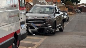 A colisão envolveu uma veículo e uma motocicleta. De acordo com as informações, o motorista do veículo, de 22 anos, seguia pela Rua Vereador Filadélphio José da Fonseca em velocidade reduzida, quando o motociclista, de 20 anos, avançou a parada obrigatória no cruzamento com a Rua Alzino Martelo e acabou colidindo contra o veículo.