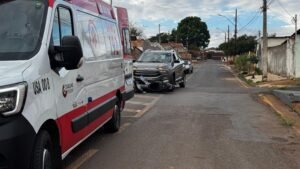 Um acidente de trânsito foi registrado na tarde desta segunda-feira (27) no cruzamento das ruas Vereador Filadélphio José da Fonseca e Alzino Martelo, no bairro Nova Floresta, em Patos de Minas.