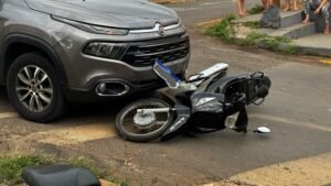 Com o impacto, o condutor da moto caiu ao solo, sofrendo ferimento na boca e uma luxação no pé direito. O Serviço de Atendimento Móvel de Urgência (SAMU) foi acionado e prestou atendimento à vítima no local, que foi encaminhada para a Santa Casa de Misericórdia.