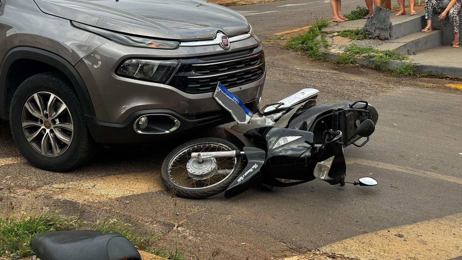 A colisão envolveu uma veículo e uma motocicleta. De acordo com as informações, o motorista do veículo, de 22 anos, seguia pela Rua Vereador Filadélphio José da Fonseca em velocidade reduzida, quando o motociclista, de 20 anos, avançou a parada obrigatória no cruzamento com a Rua Alzino Martelo e acabou colidindo contra o veículo.
