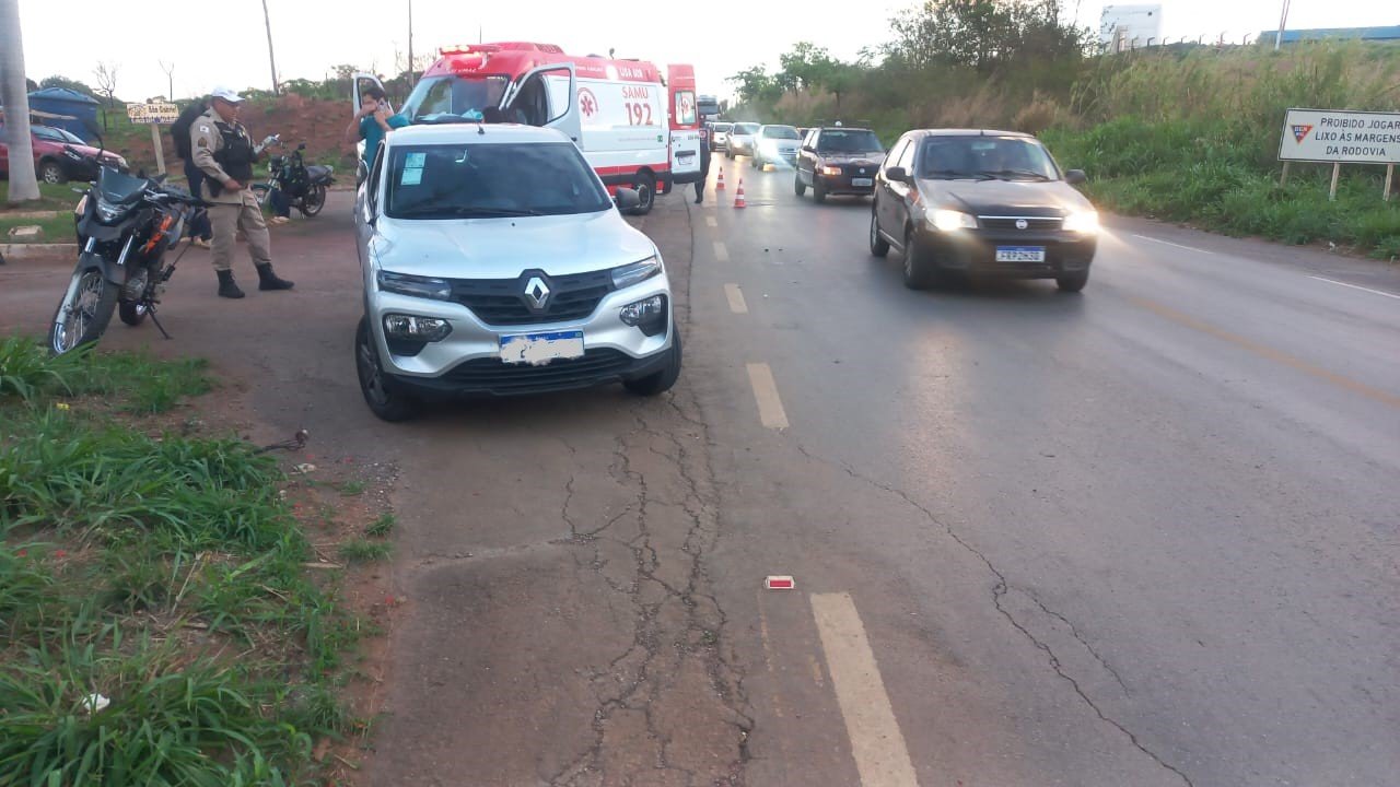 De acordo com informações da Polícia Militar Rodoviária (PMRv), o motorista do Kwid, de 35 anos, seguia pela rodovia sentido decrescente quando um automóvel Corolla que estava à sua frente freou bruscamente. Para evitar uma batida traseira, ele desviou para a esquerda e, ao retornar para a pista, acabou colidindo lateralmente com a motocicleta que trafegava ao seu lado direito.