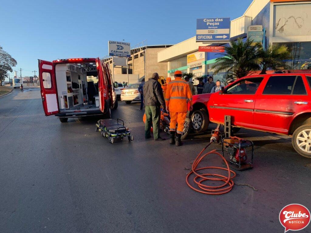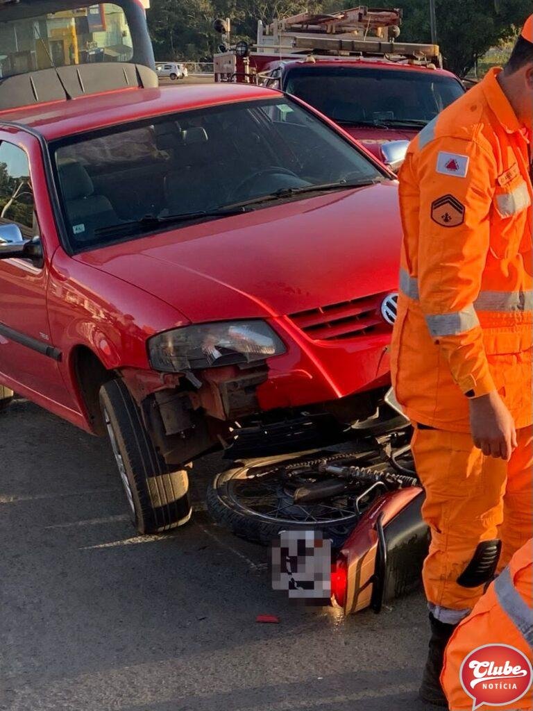 No início da manhã deste sábado (02/6), um acidente entre um automóvel e uma motocicleta foi registrado na Av. Juscelino Kubitschek, na saída de um posto de combustível.
