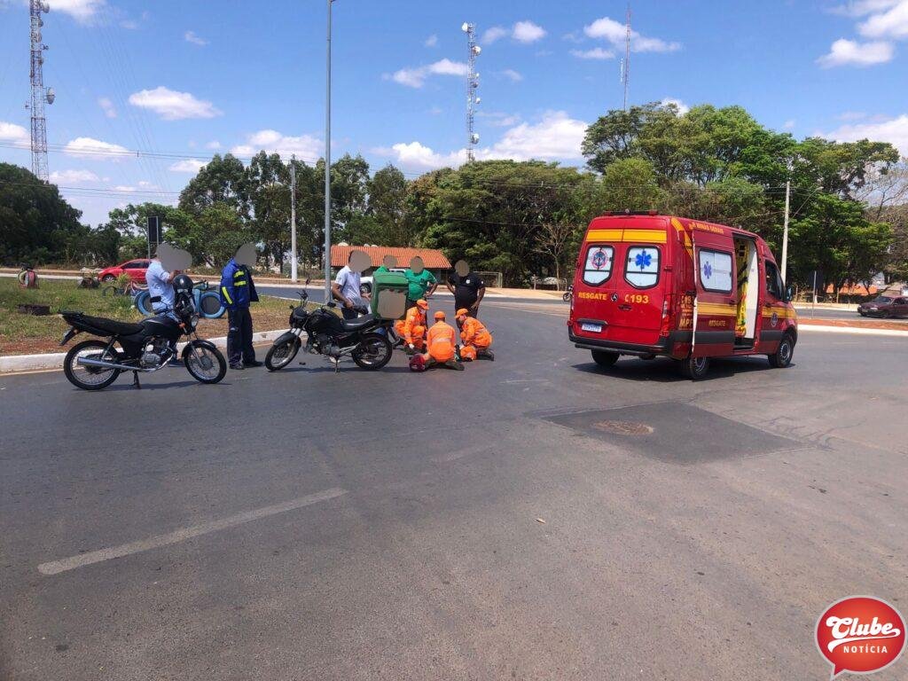 Um motociclista ficou ferido após acidente na rotatória das avenidas Marabá e Otavina Alves Souza, no bairro Alto do Limoeiro, em Patos de Minas. A suspeita é que ele tenha sido “fechado” por um carro.