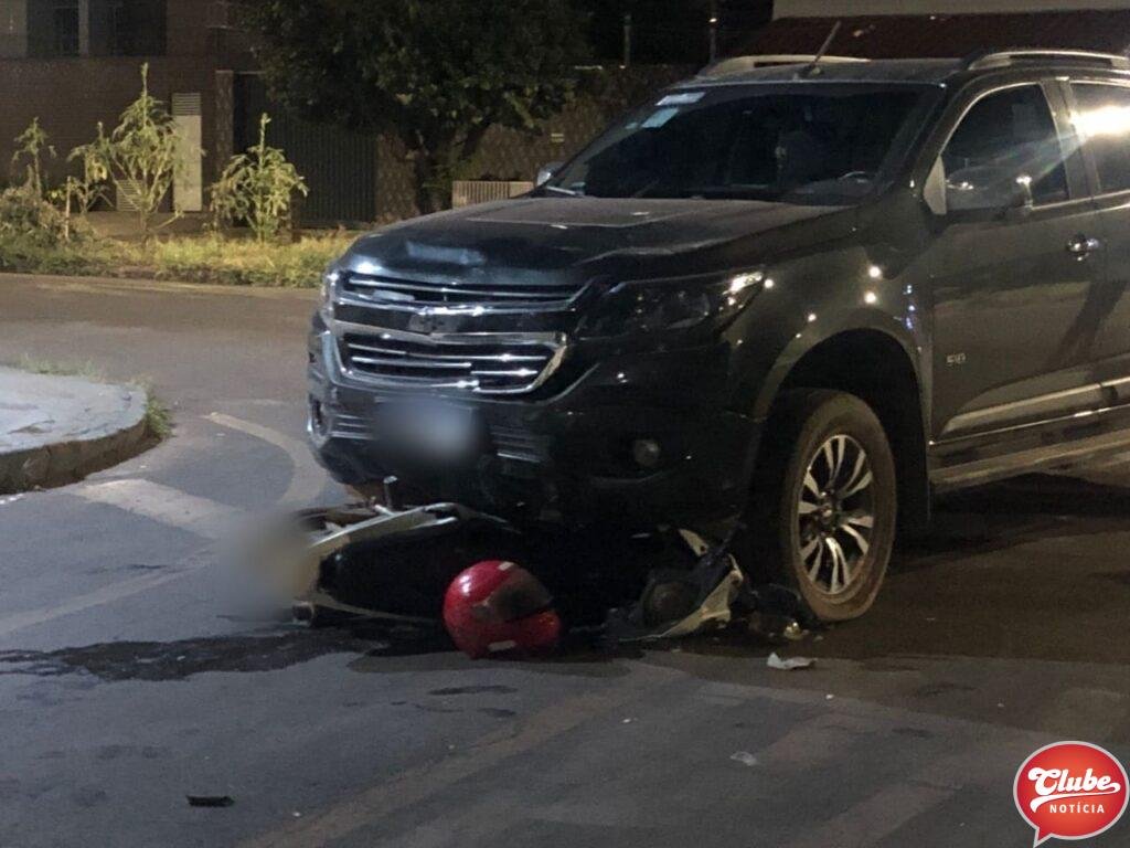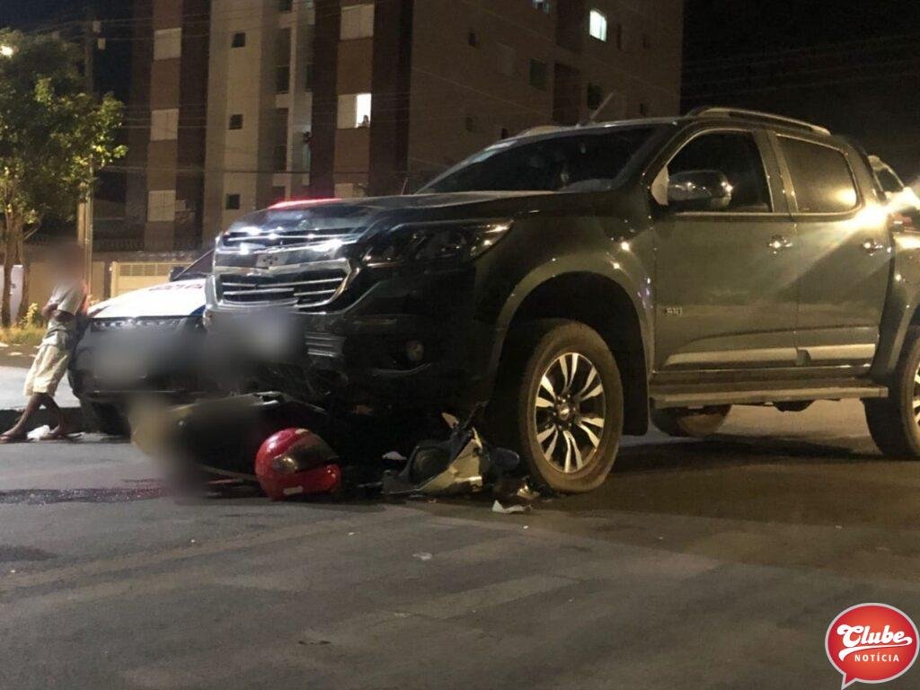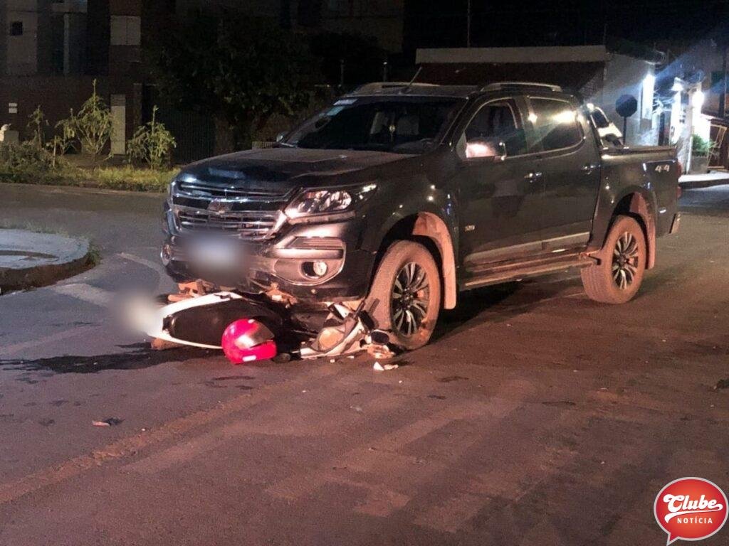 A caminhonete bateu na lateral da motoneta. Com o impacto, o motociclista foi jogado contra o chão. A moto parou embaixo da caminhonete. Uma equipe do SAMU esteve no local e socorreu o motociclista de 24 anos. O estado de saúde da vítima não foi informado. O motorista não teve ferimentos.