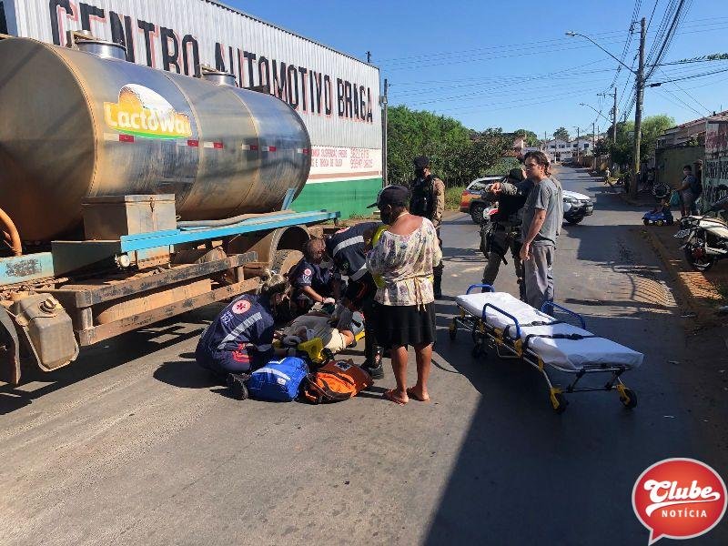 Após a manobra, a motociclista se assustou, bateu na lateral do caminhão e caiu no chão. Ela sofreu fratura exposta na perna esquerda, fratura no tornozelo direito, suspeita de fratura no cotovelo esquerdo e escoriações pelo corpo. Uma ambulância avançada do SAMU socorreu a vítima e a conduziu para o Hospital Regional Antônio Dias.