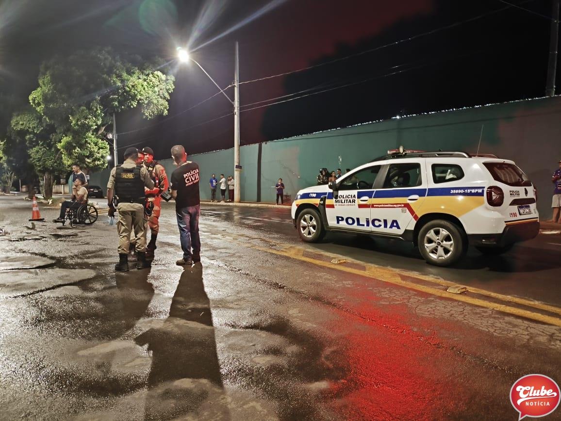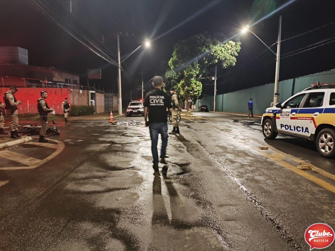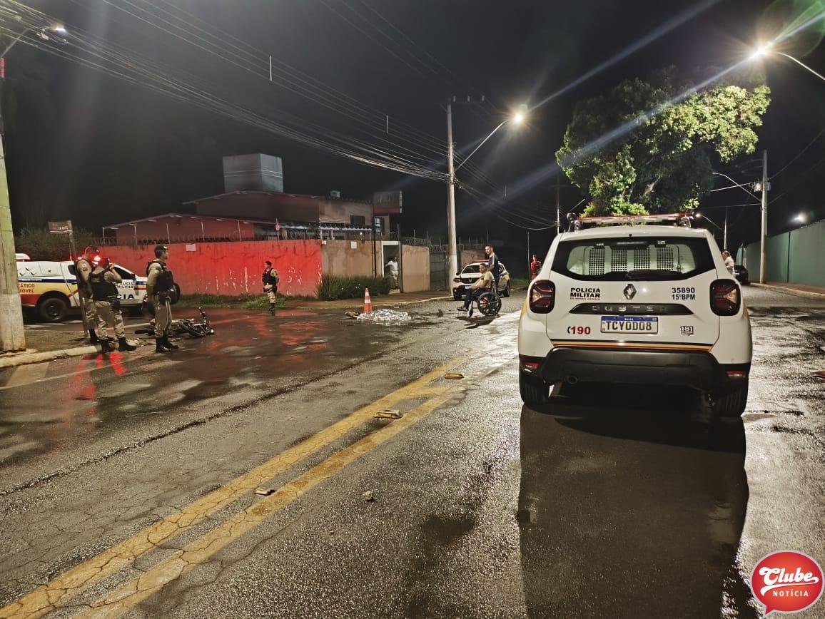 Um motociclista morreu num grave acidente na noite deste sábado na Rua Major Gote, no Bairro Alto do Caiçaras, em frente ao Parque de Exposições de Patos de Minas. A batida envolveu uma moto Honda/Fan e um carro Fiat/Uno Mille.
