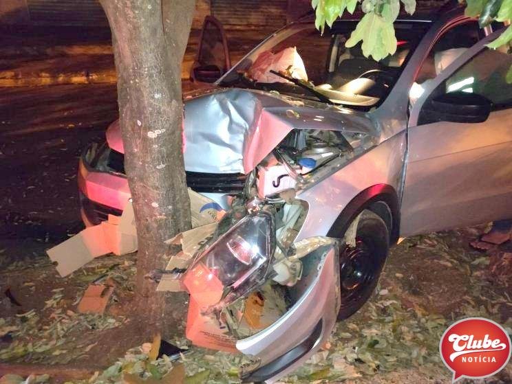 Na madrugada desta sexta-feira (05/08), a Polícia Militar registrou um acidente de trânsito na Avenida Dilermando Gomes de Deus, no bairro Jardim Panorâmico. O motorista, de 41 anos, seguia pela avenida no sentido Jardim Panorâmico/Sebastião Amorim, conduzindo um carro VW/Saveiro, quando perdeu o controle e bateu o veículo violentamente em uma árvore do canteiro central.