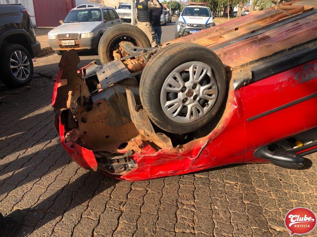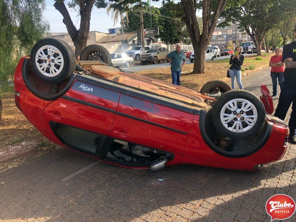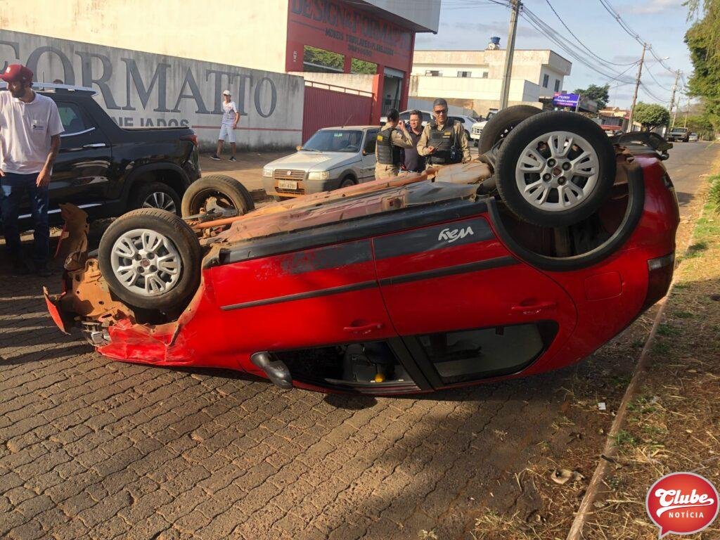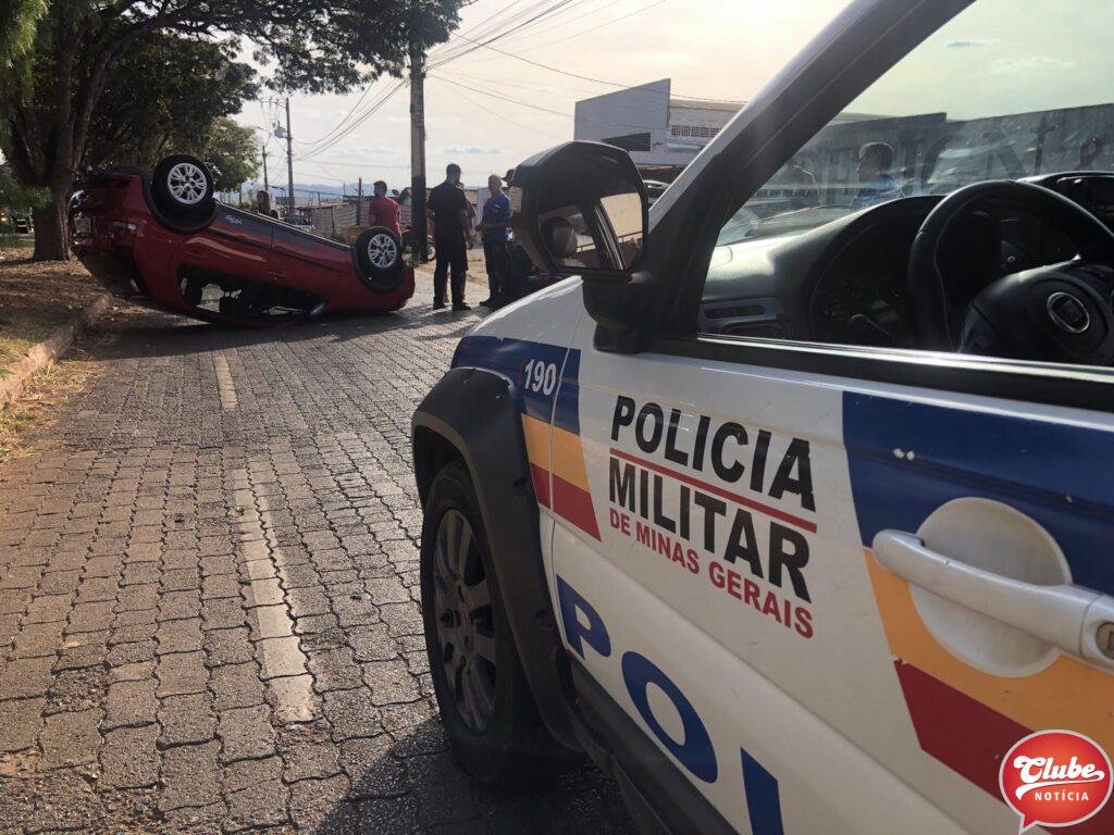 Um motorista de 67 anos saiu ileso após capotar o veículo na tarde desta segunda-feira na Avenida Afonso Queiroz, no bairro Sebastião Amorim em Patos de Minas.