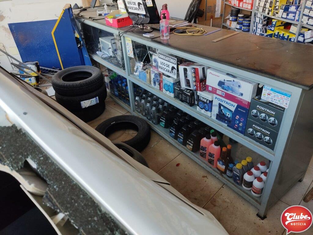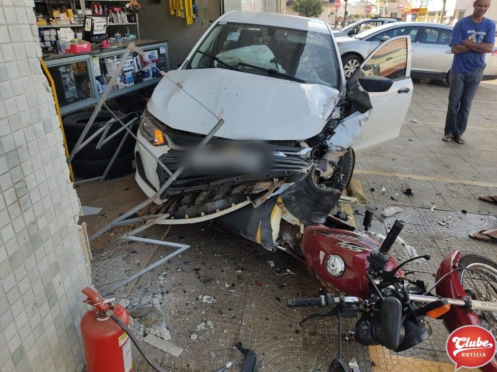 Por fim, o carro da idosa atravessou o cruzamento, invadiu o estacionamento de uma loja, bateu numa moto estacionada, rodou e parou na porta da auto-peças. Por sorte, a funcionária não se feriu.
