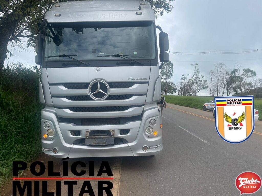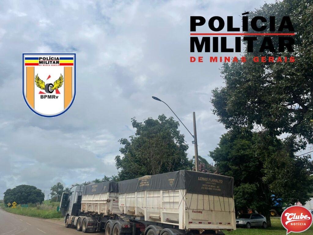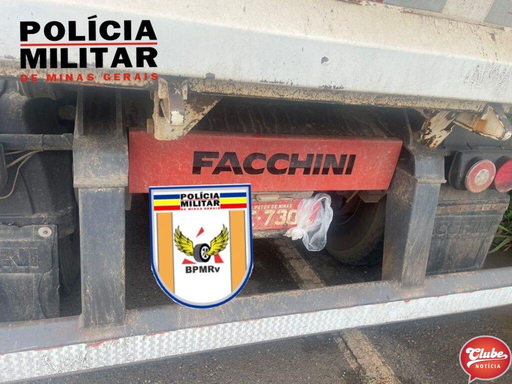 A POLÍCIA MILITAR DE MINAS GERAIS, Durante operação policial tomou conhecimento de que um caminhão tracionando dois semi-reboque estaria transitando na rodovia vindo sentido Patos de Minas com a última placa do semi reboque tampada por uma sacola plástica.