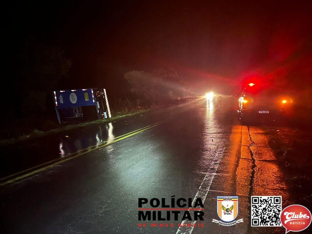Durante as diligências os militares apuraram que um homem de 25 anos, condutor do caminhão IVECO/TECTOR 240E28 estava retornando de Brasília para Patos de Minas quando veio a perder o controle direcional do veículo devido à intensa chuva no momento do acidente, saindo da pista de rolamento e tombando logo em seguida , parando na faixa de domínio da rodovia.