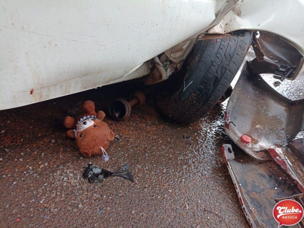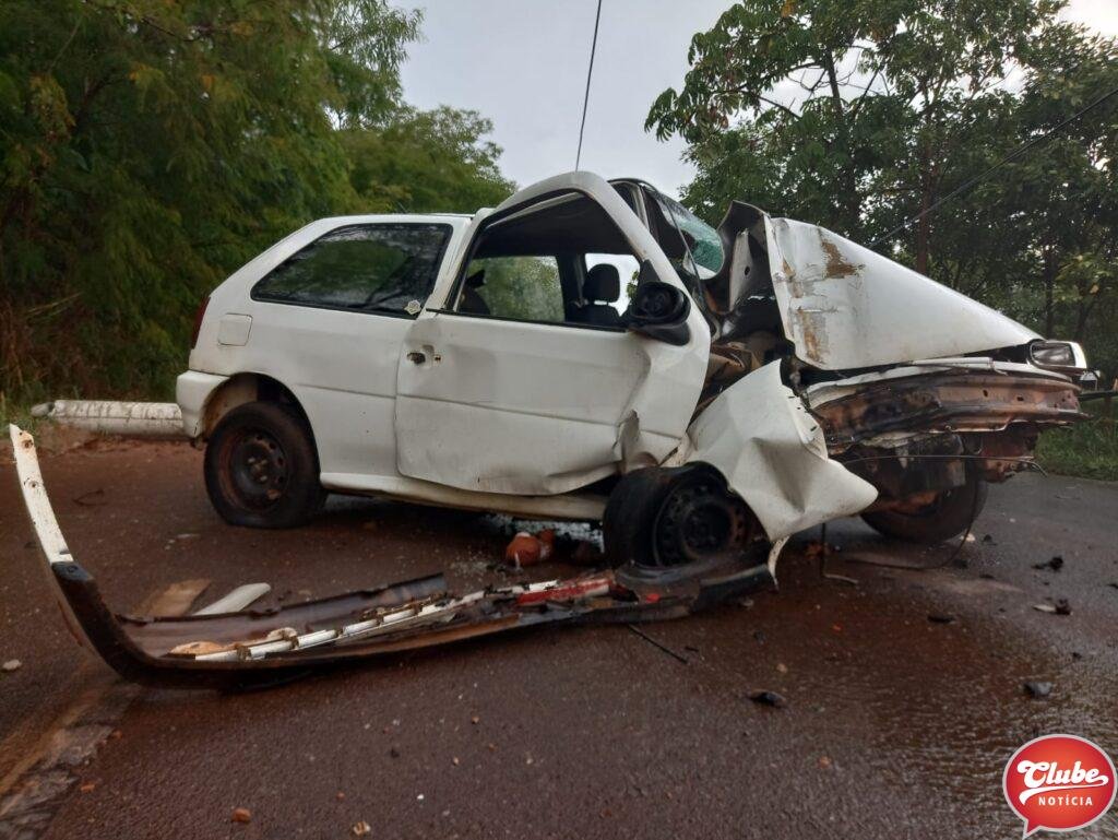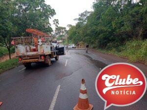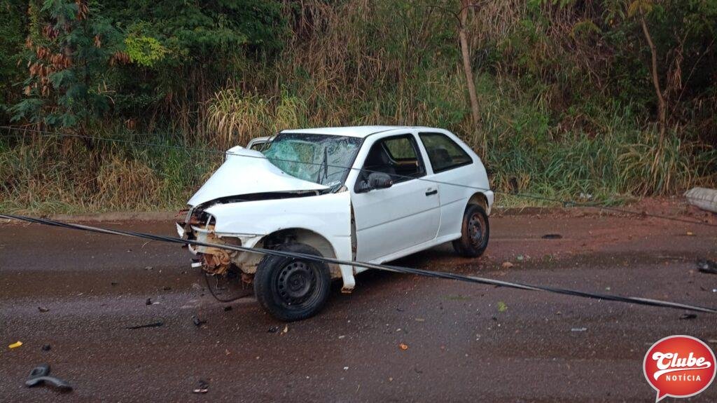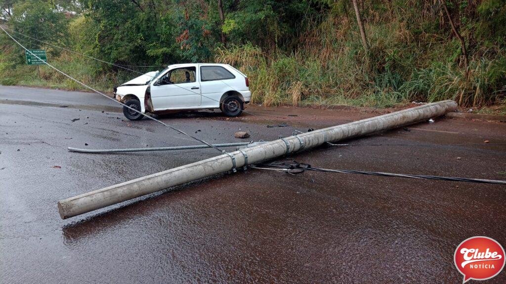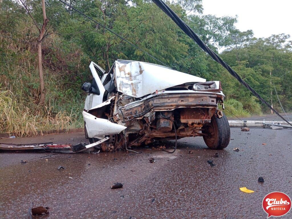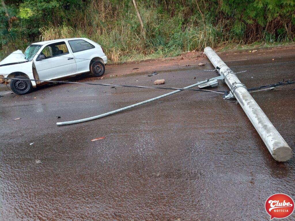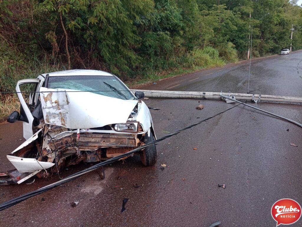 O veículo teve danos generalizados na parte da frente e o poste caiu no meio da pista. A Polícia Militar foi acionada e interditaram a pista para que o veículo e o poste fossem retirados.