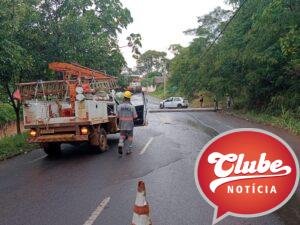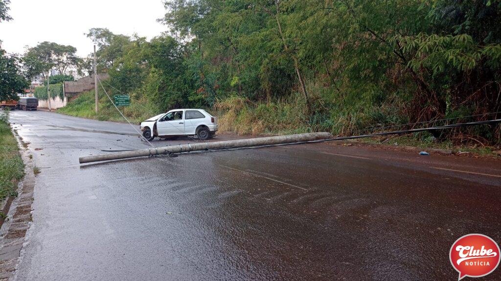 Neste domingo (19), um motorista perdeu o controle do carro e bateu em um poste no prolongamento da av. Fátima Porto, em Patos de Minas, com o impacto o poste caiu no chão.