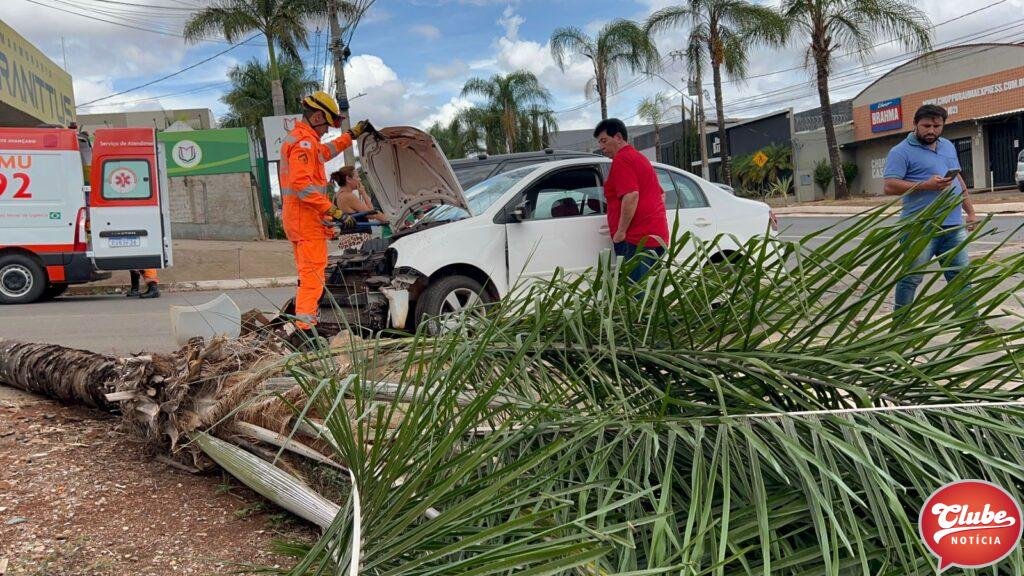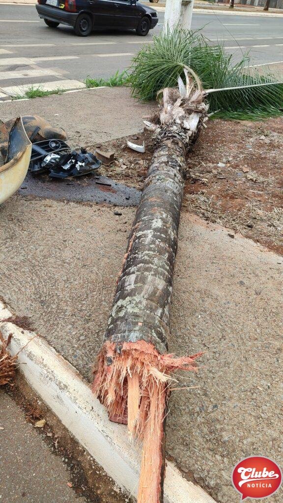 A motorista do automóvel transitava pela Rua José Augusto de Queiroz quando perdeu o controle do veículo atravessou a Avenida Marabá e colidiu com uma palmeira. O impacto da batida foi intenso o suficiente para arremessar a palmeira do outro lado da via. Questionada a condutora não soube informar o que teria ocasionado a perca de controle.