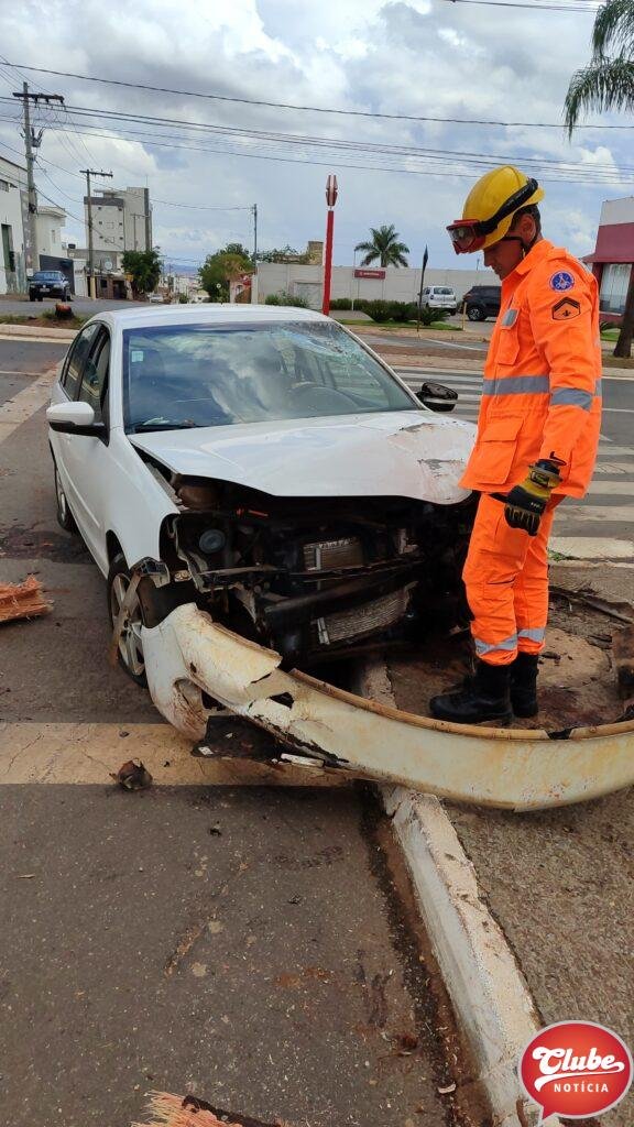 Na tarde deste domingo (20), o Serviço de Atendimento Móvel de Urgência (SAMU) e o corpo de bombeiros foram acionados para atender a um acidente na Avenida Marabá, no bairro caiçaras, em Patos de Minas, envolvendo um veículo Voyage branco.