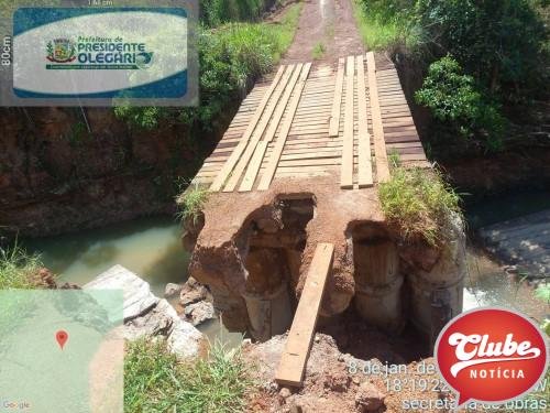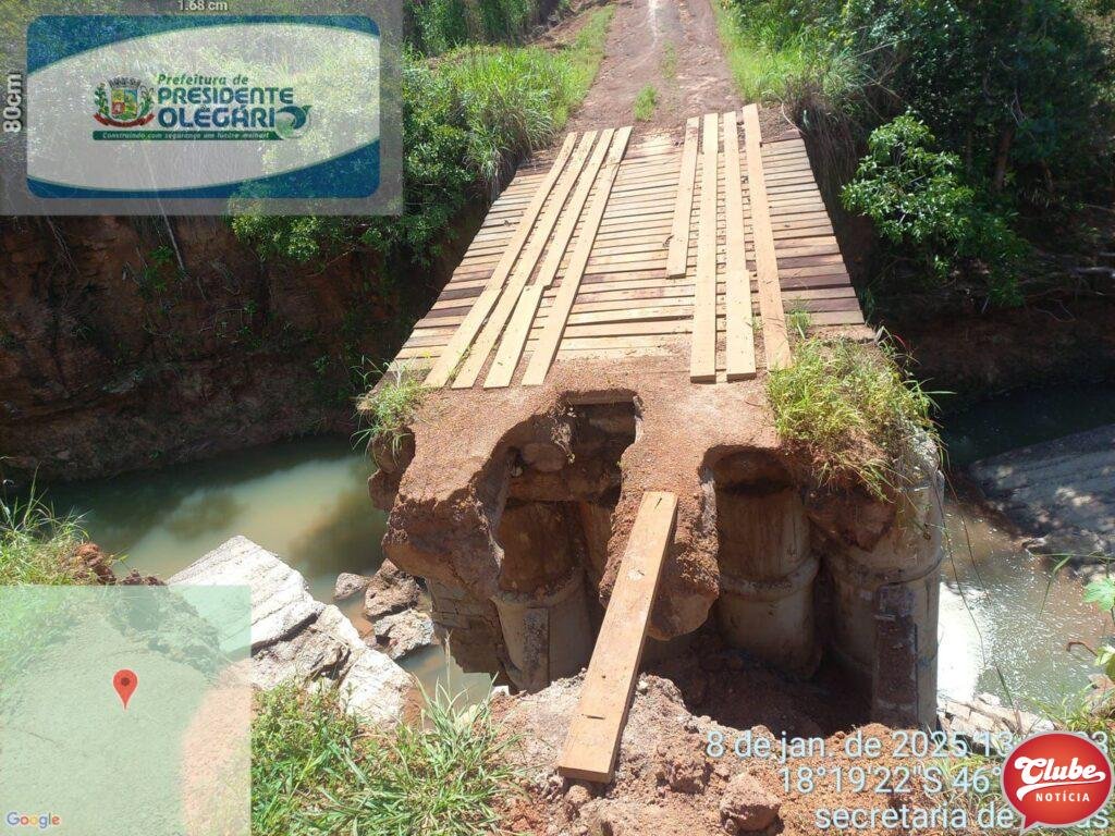As fortes chuvas, concentradas desde início do ano, danificaram as estradas municipais, sendo que algumas estão intransitáveis e algumas pontes do município ficaram condenadas, causando riscos iminente aos usuários, como a Ponte do Córrego Pirapitinga, Ponte da Tapera que é divisa de Presidente Olegário e Lagoa Grande; entre outras no município de Presidente Olegário.