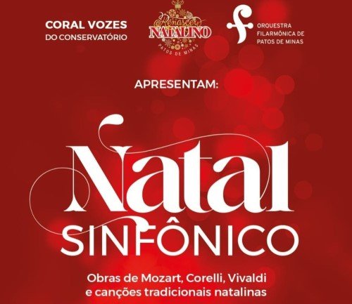 O espetáculo reunirá obras de compositores consagrados, como Mozart, Corelli, Schubert e Vivaldi, além de clássicos do repertório de Natal. No palco estarão o Coral Vozes, vinculado ao Conservatório Municipal, e a Orquestra Filarmônica de Patos de Minas, sob direção artística e regência de Felipe Oliveira.