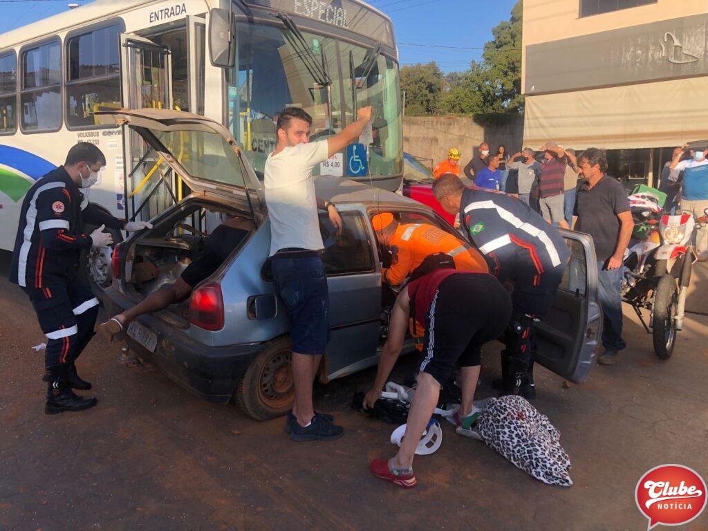 O ônibus não tinha passageiros e o motorista dele não sofreu nenhum ferimento. O trânsito foi interditado para o socorro às vítimas. A Polícia Militar e agentes municipal de trânsito também atuaram na ocorrência. A documentação dos veículos e dos condutores estão regulares.