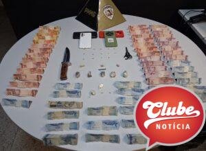 Na ação de hoje, foram presos os dois suspeitos, de 22 e 24 anos e durante as buscas foram apreendidas substâncias entorpecentes, um coldre e R$ 3.900,00 em dinheiro.