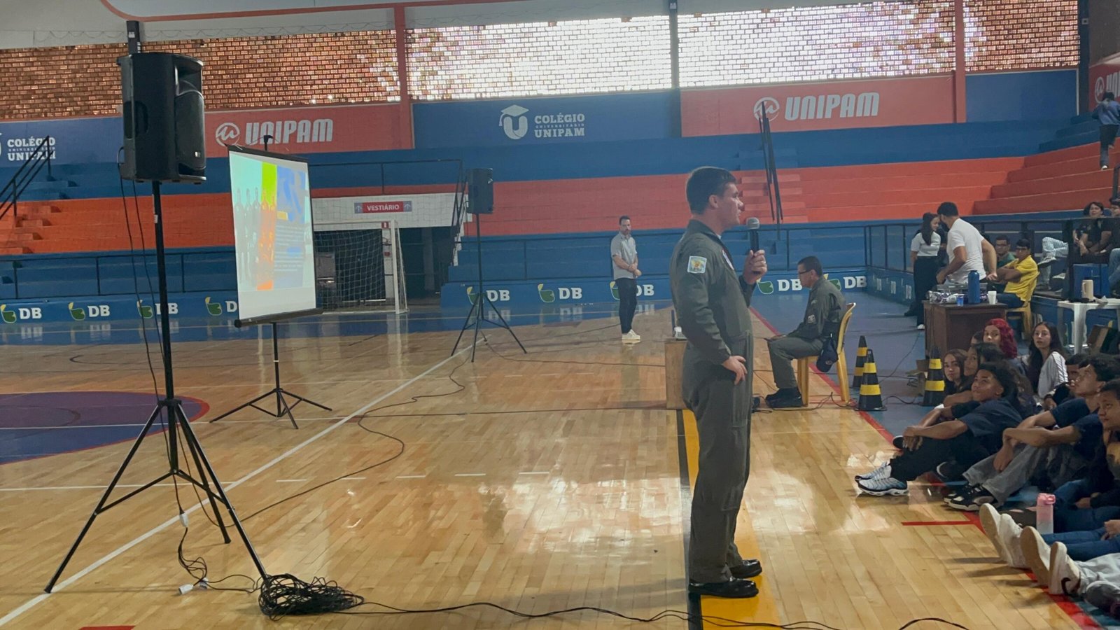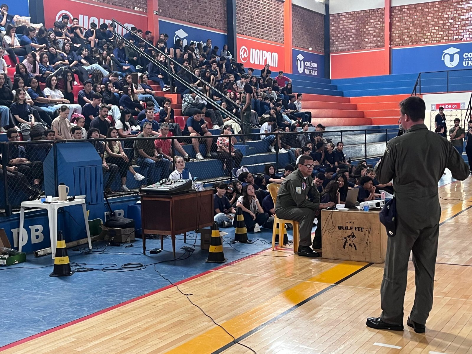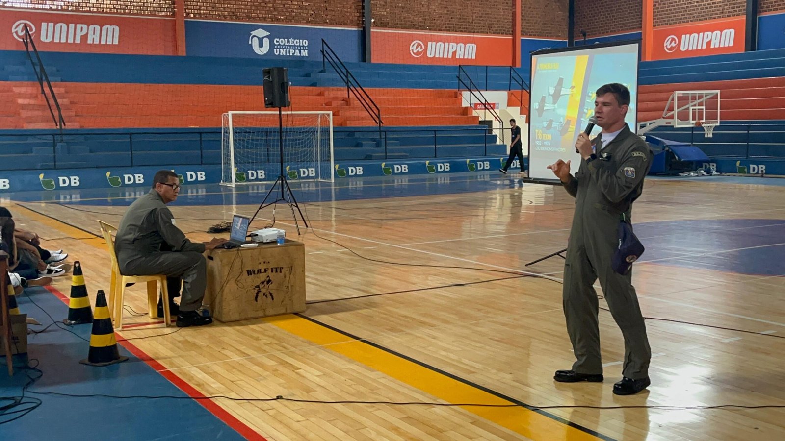 Durante a palestra, os estudantes conheceram os caminhos para ingressar na FAB. Uma das principais portas de entrada é a Escola Preparatória de Cadetes do Ar (EPCAR), localizada em Barbacena (MG), onde jovens entre 14 e 18 anos podem cursar o ensino médio. Após essa etapa, é possível seguir para a Academia da Força Aérea (AFA), em Pirassununga (SP), onde ocorre a formação superior.