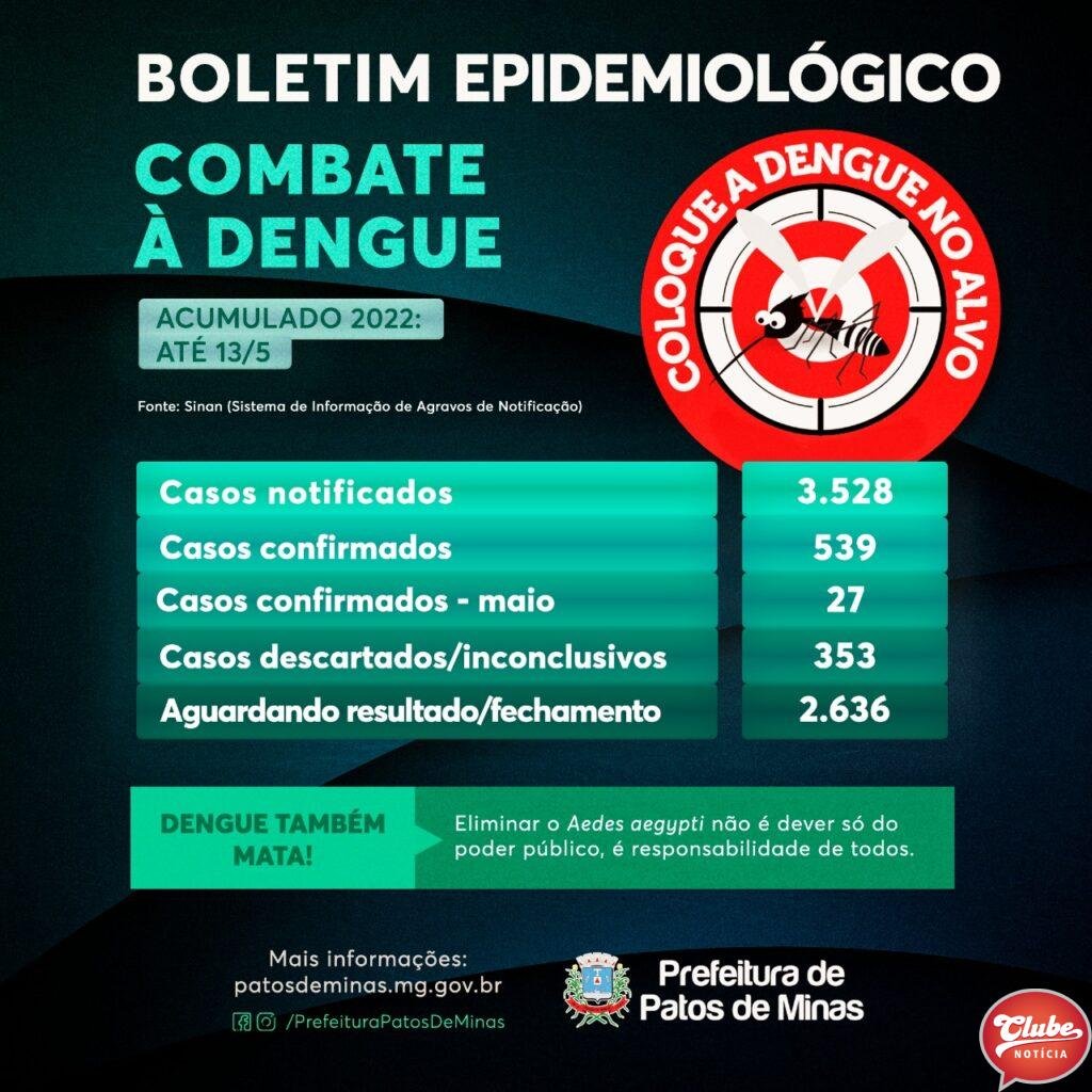 No boletim publicado nesta sexta-feira (13/5), mais 71 casos de dengue foram confirmados em Patos de Minas. 522 notificações foram registradas em comparação aos dados divulgados no dia 06 de maio. Os números chamam atenção e reforçam a necessidade de redobrarmos os cuidados em relação ao Aedes aegypti.